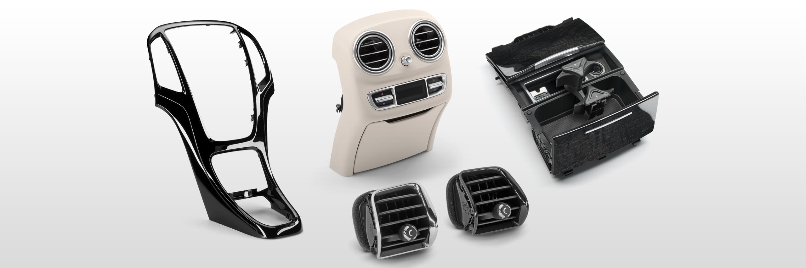 Dekorblenden verleihen dem Interieur eines Fahrzeugs einen eigenen Look und unterscheiden sich meist nicht nur von Modell zu Modell einer Automarke, sondern sie dienen auch innerhalb einer Modellreihe als Unterscheidungsmerkmal zwischen verschiedenen Ausstattungslinien. Aus diesem Grund legt Weber Kunststofftechnik bei diesem Detail viel Wert auf Gestaltung und Oberfläche. Einen hohen Grad an kundenindividuellen Produkten ermöglichen wir durch anspruchsvolle Lackierteile mittels Dekor-, Haptik-, Effekt- und Hochglanzlacken auf Wasser- oder Lösungsmittelbasis sowie Verkleidungsteile in Trim-Farben.