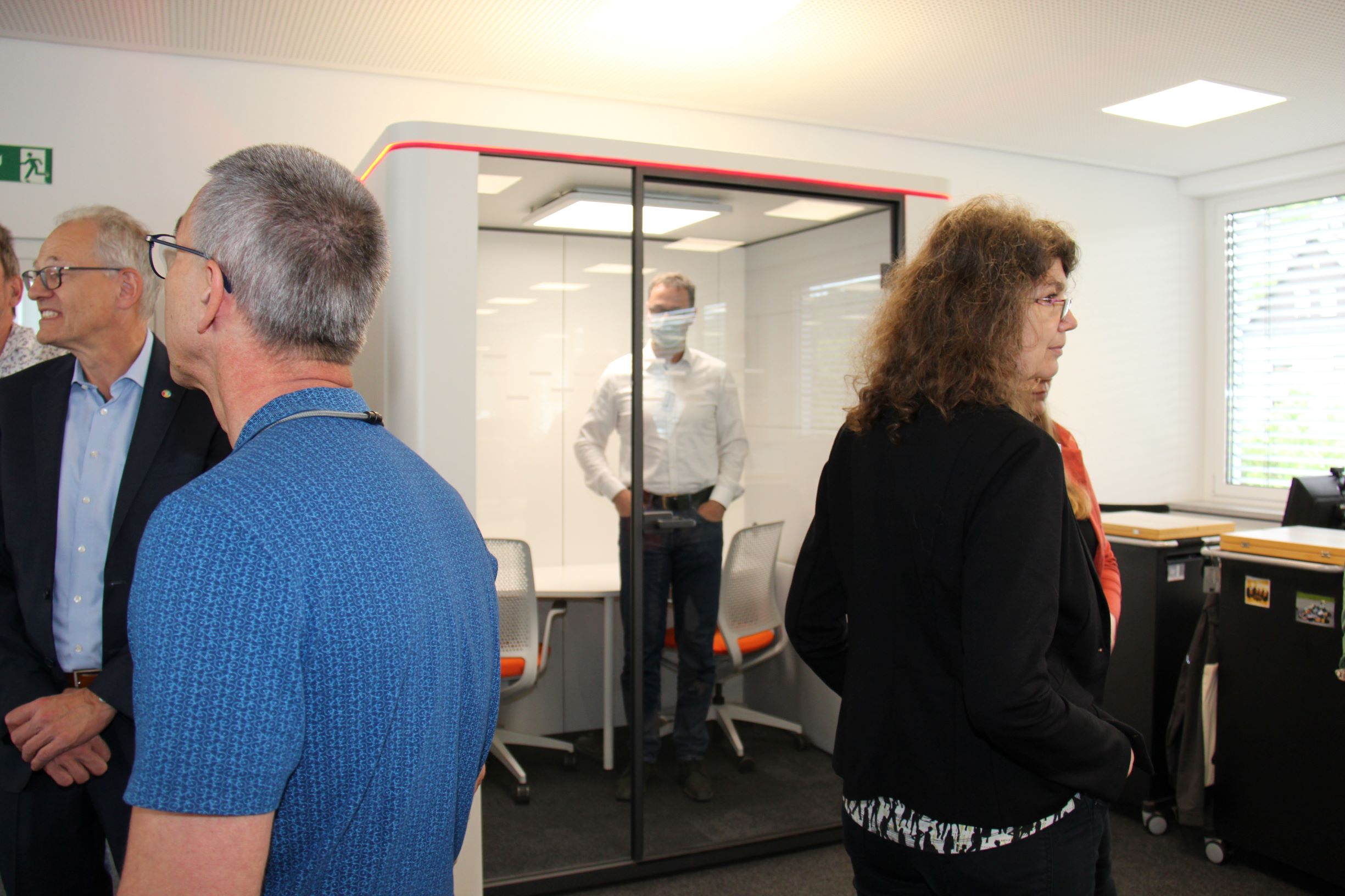 CEO Dr. Thomas Zipp führte den Besuch gemeinsam mit Vertriebsmanagerin Maike Winterhoff durch die Räumlichkeiten. „Lassen Sie die Menschen mitgestalten, die später in das Gebäude einziehen und in der New Work Umgebung arbeiten werden,“ empfahl der geschäftsführende Gesellschafter.